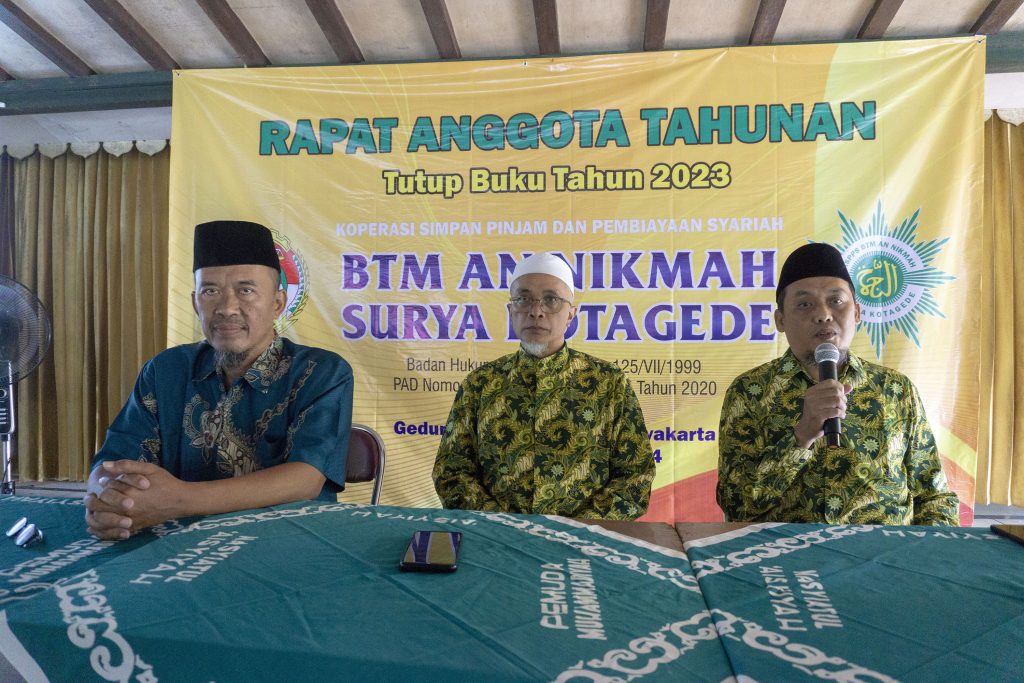 Koperasi Simpan Pinjam dan Pembiayaan Syariah (KSPPS) BTM An Nikmah Surya Kotagede yang merupakan salah satu Amal Usaha Muhammadiyah dan berada di bawah naungan Majelis Ekonomi dan Kewirausahaan PCM Kotagede menyelenggarakan Rapat Anggota Tahunan atau RAT untuk tutup tahun buku 2023 pada Sabtu 24 Februari 2024. RAT yang merupakan forum tertinggi dalam Koperasi wajib segera diadakan paling lambat 6 bulan setelah tutup buku.